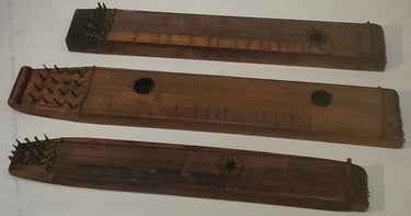 Cithares de type "kobza" provenant des montagnes de Freiberg en Allemagne (Saxe), zone frontalière de la Tchéquie. Photo Wilfried Ulrich, repris de son ouvrage "Die Hummel", 2011. Conservées au Stadt- und Bergbaumuseum de Freiberg, numéros d'inventaire 77/390, 77/391 et 77/389.